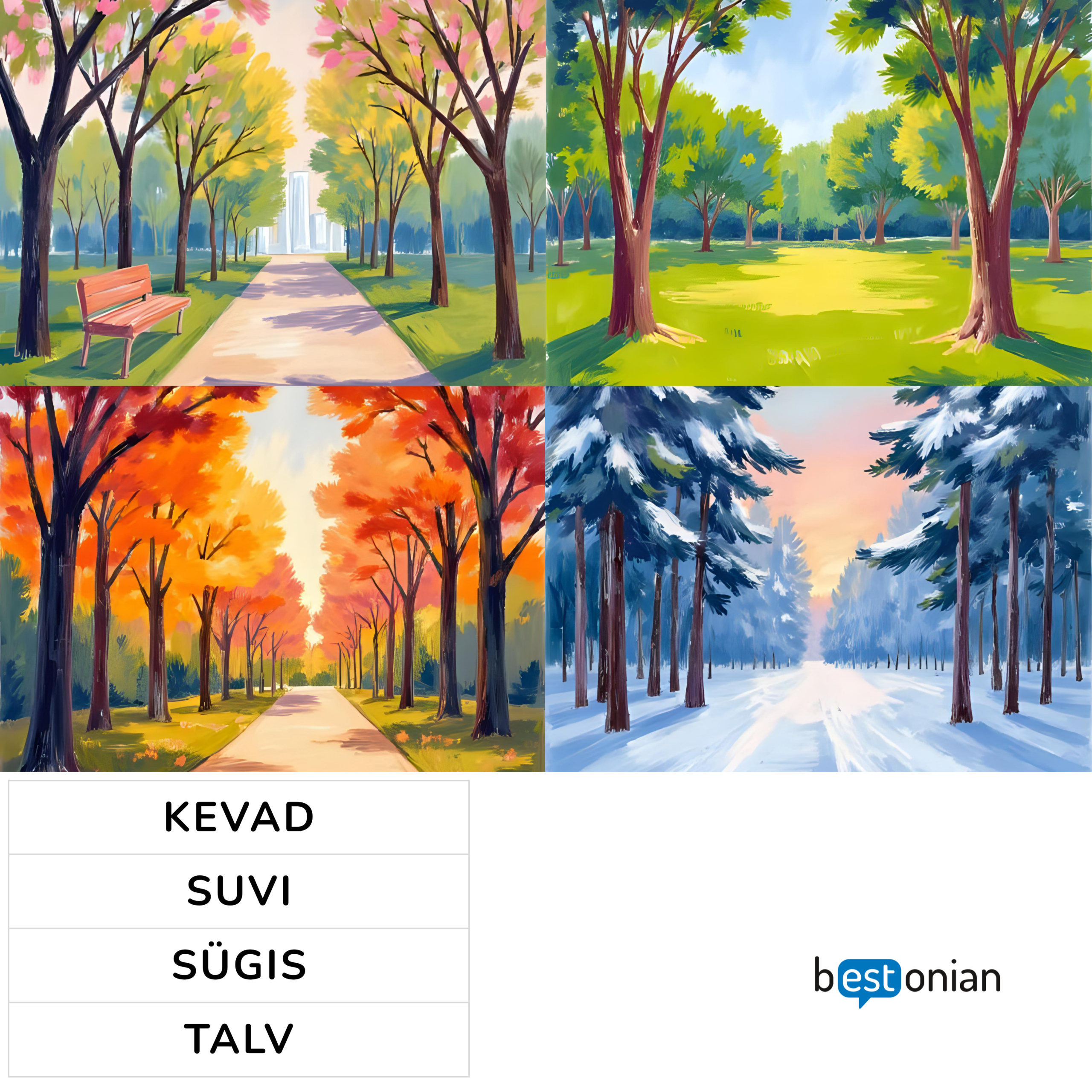 - 1x A4 nelja aastaaja nimetusega