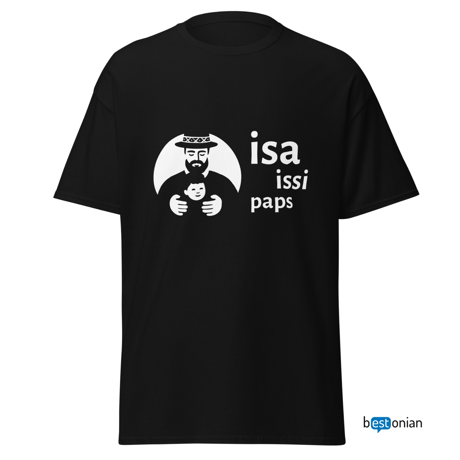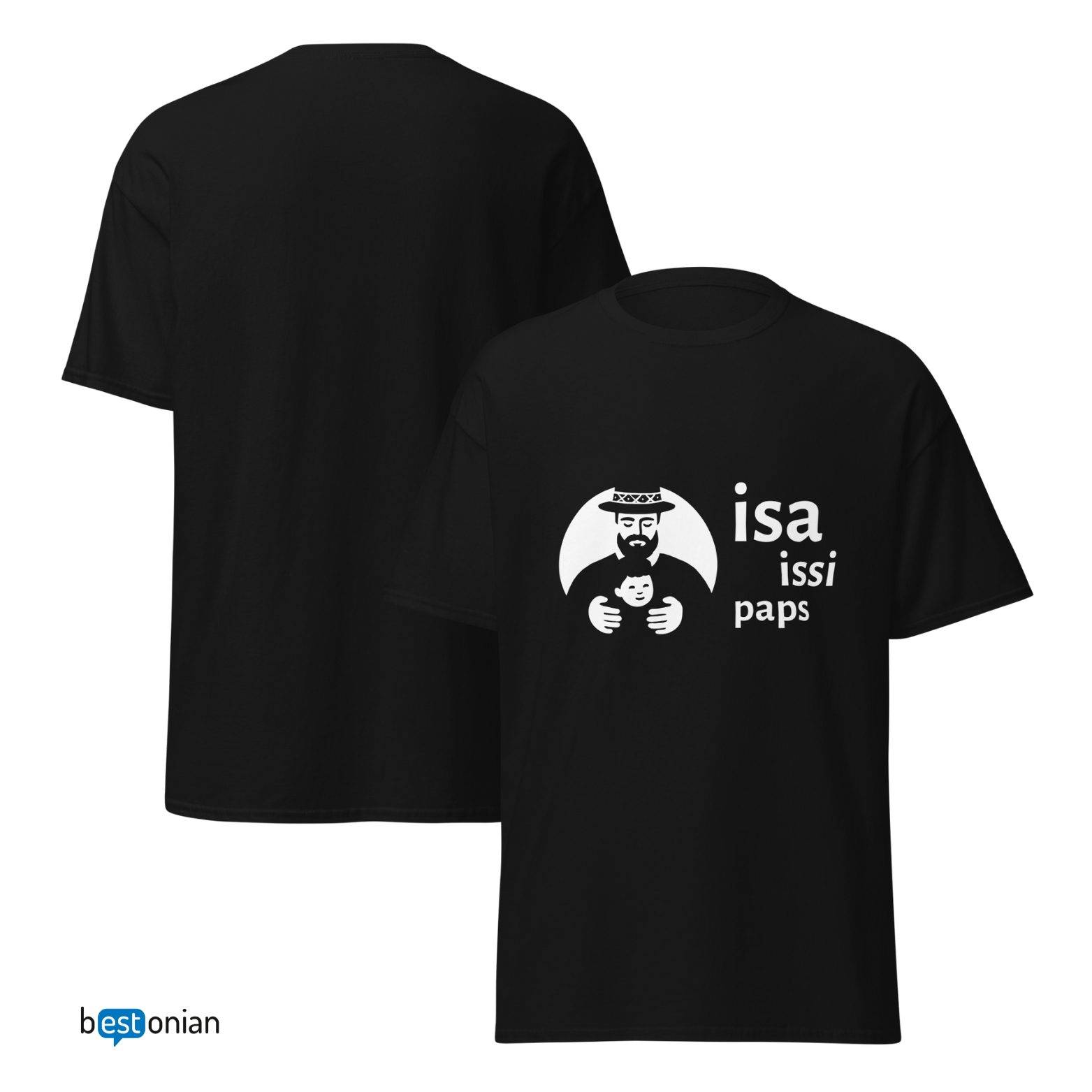 Must unisex T-särk valge trükiga isale, issile või papsile.
