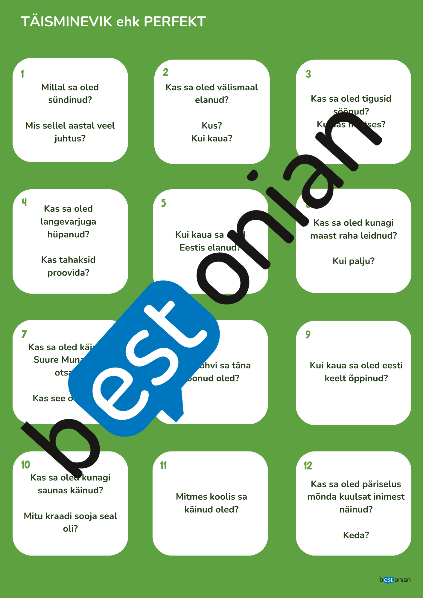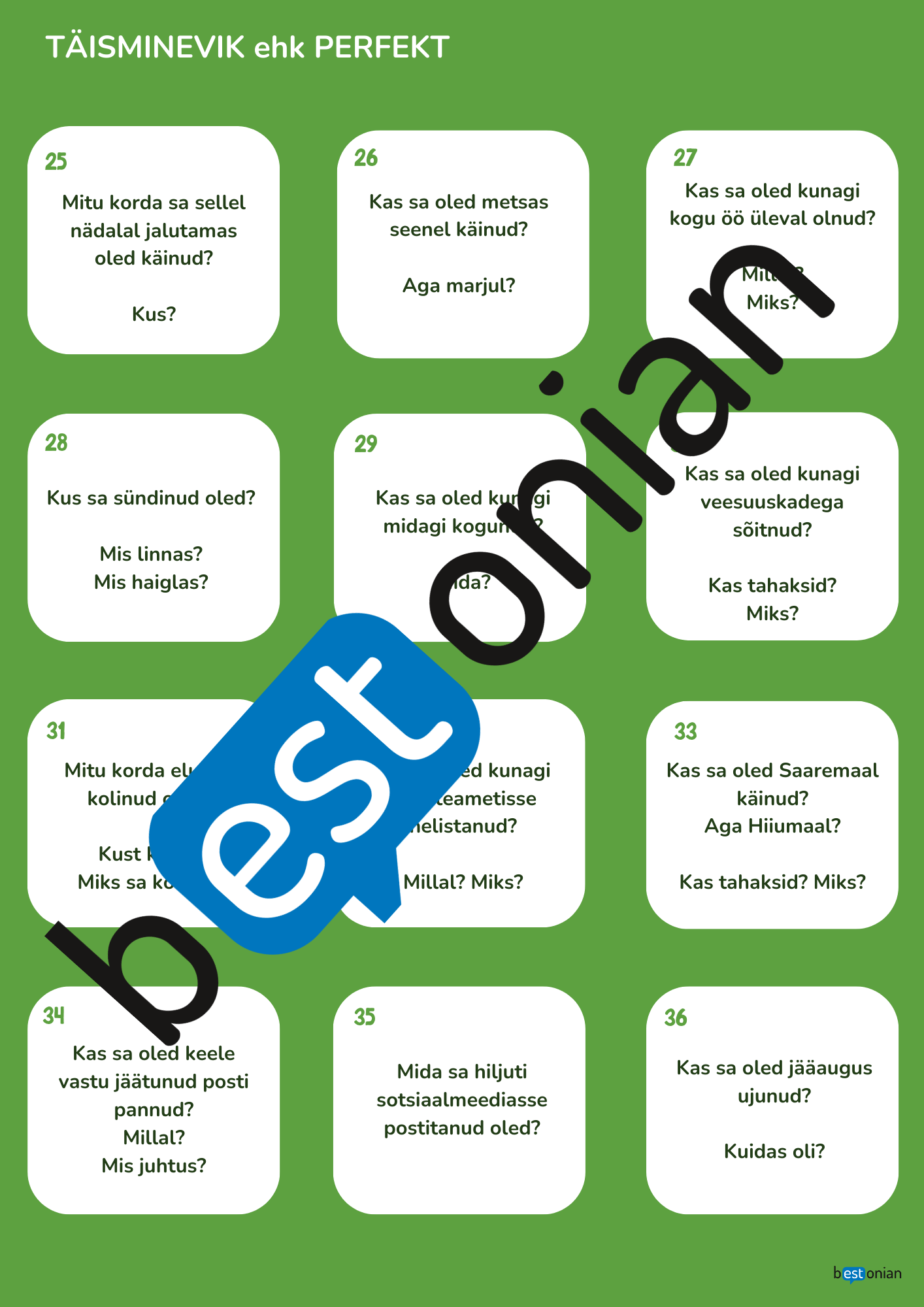 - 36 vestluskaarti välja lõikamiseks (ja lamineerimiseks)
