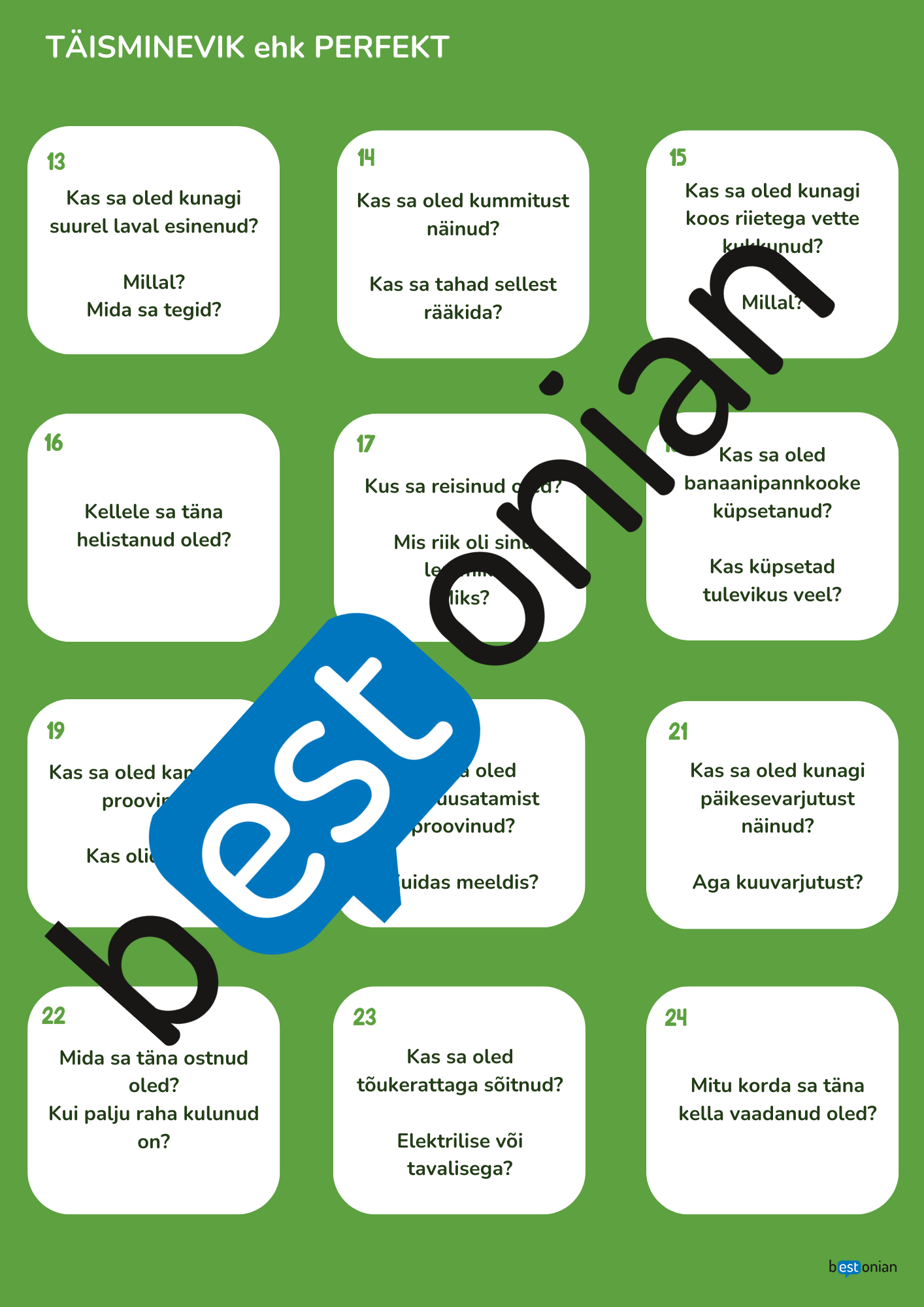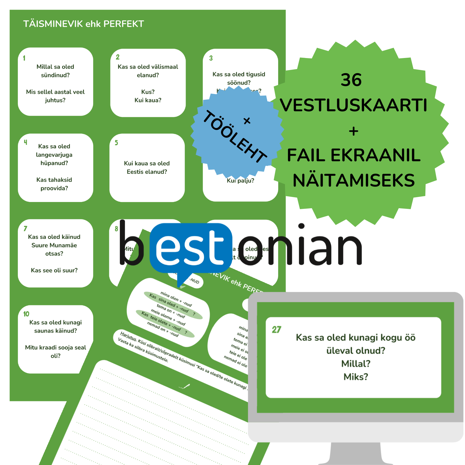 Täismineviku vestluskaardid. 36 vestluskaarti + fail, mida on mugav ekraanil näidata + tööleht.
