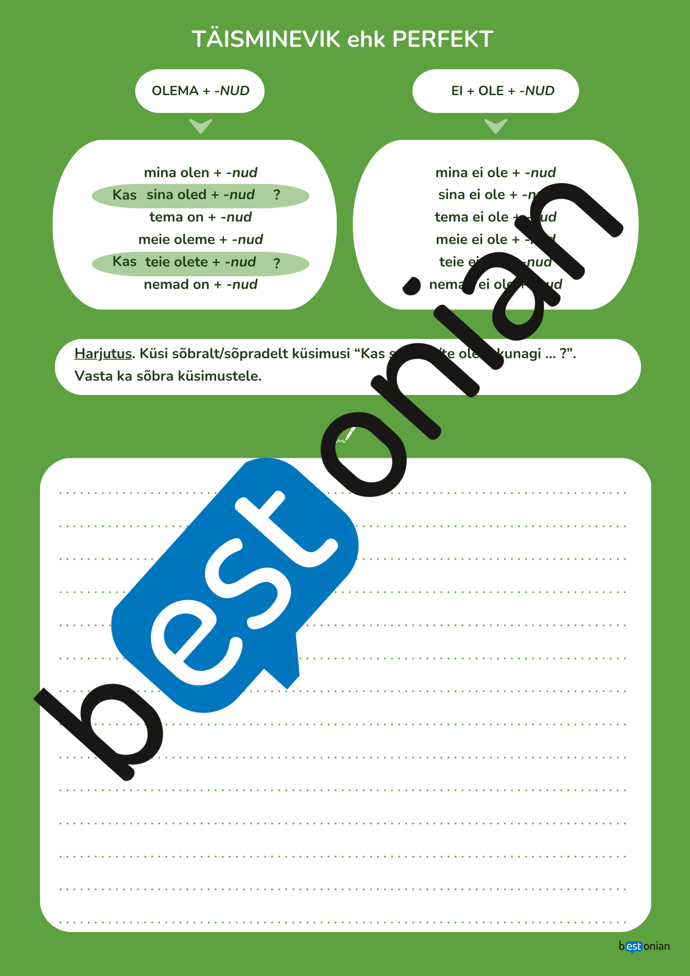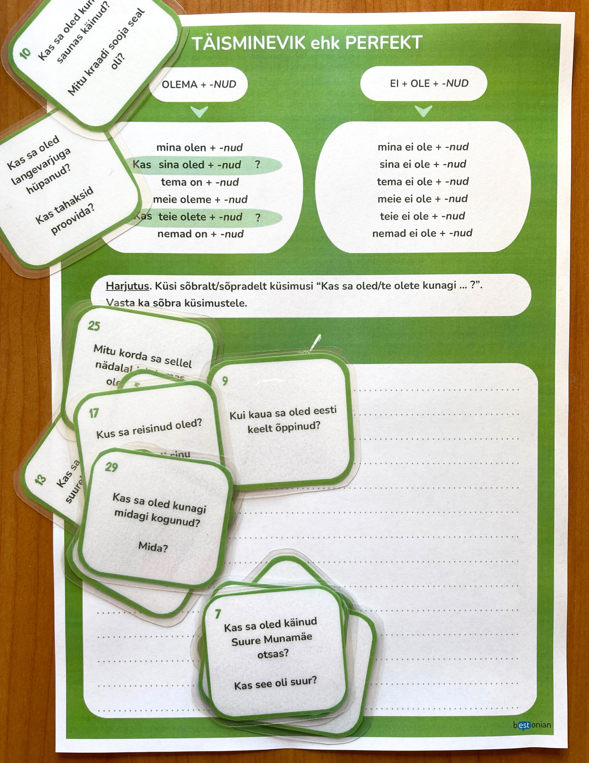- tööleht grammatikatabeli ja (vestlus)harjutusega (ise täismineviku moodustamine)